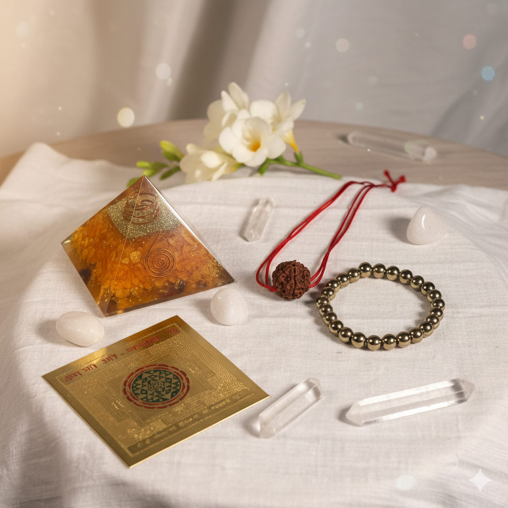 Each element in this combo is handpicked and energized to attract prosperity, stability, and success — making it an ideal choice for Diwali rituals, gifting, or personal spiritual practice.